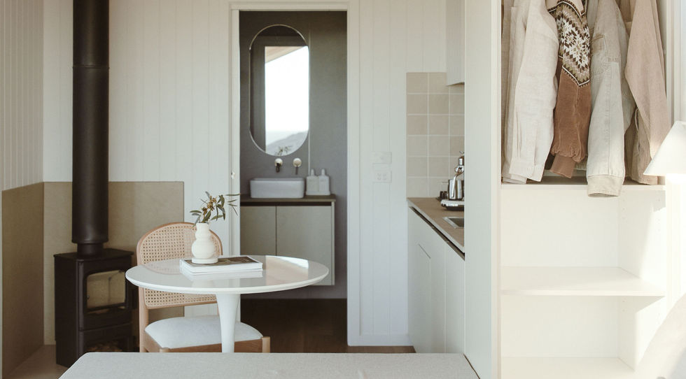Tiny house Tove sits just 100 metres from the beach on Kangaroo Island’s north coast. Off-grid and thoughtfully designed, it features Scandinavian-inspired interiors, warm timber finishes and large glass doors that open onto a private deck overlooking the ocean.